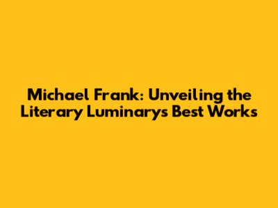 Michael Frank: Unveiling The Literary Luminary's Best Works