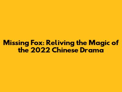 Hey guys! Remember that amazing Chinese drama from 2022, "Missing Fox"? I know, I know, it feels like ages ago, but the feels are still so real! Let's dive into why this drama had us all hooked and why we're still missing it.