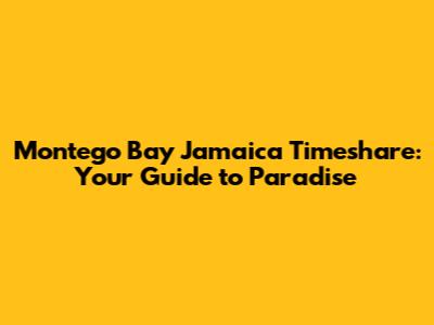 Montego Bay Jamaica Timeshare: Your Guide To Paradise