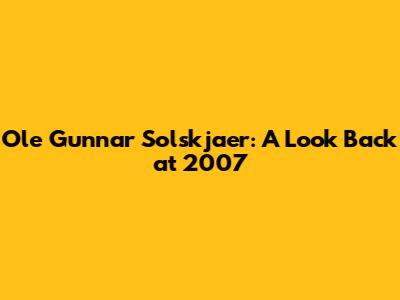 Ole Gunnar Solskjaer: A Look Back At 2007