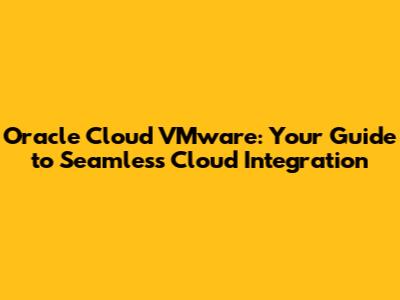 Oracle Cloud VMware: Your Guide To Seamless Cloud Integration