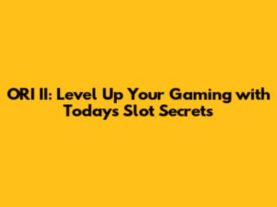 ORI II: Level Up Your Gaming With Today's Slot Secrets