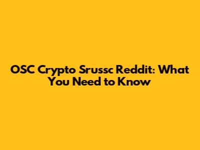 OSC Crypto S'russc Reddit: What You Need To Know