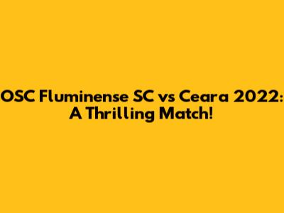 Let's dive into the exhilarating showdown between OSC Fluminense SC and Ceara in 2022! This match was a rollercoaster of emotions, showcasing the passion and skill that Brazilian football is known for. Whether you're a die-hard fan or just curious about the game, we'll break down the key moments, strategies, and overall excitement of this memorable encounter. So, buckle up and get ready for a detailed recap that brings you right into the heart of the action!