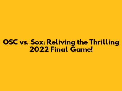 OSC Vs. Sox: Reliving The Thrilling 2022 Final Game!