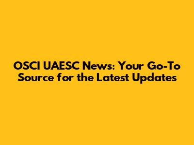 OSCI UAESC News: Latest Updates And Insights