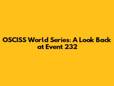 OSCISS World Series: A Look Back At Event 232