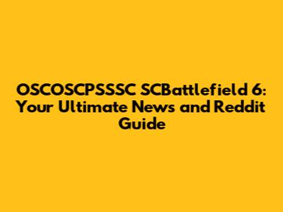 OSCOSCPSSSC SCBattlefield 6 News, Updates, And Reddit Buzz