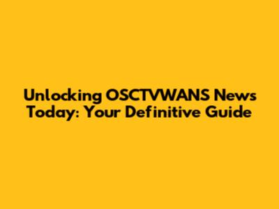 Unlocking OSCTVWANS News Today: Your Definitive Guide