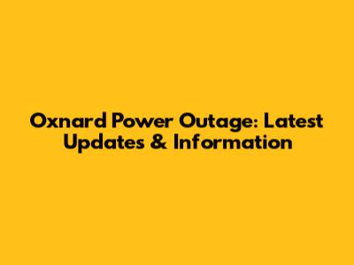 Oxnard Power Outage: Latest Updates & Information