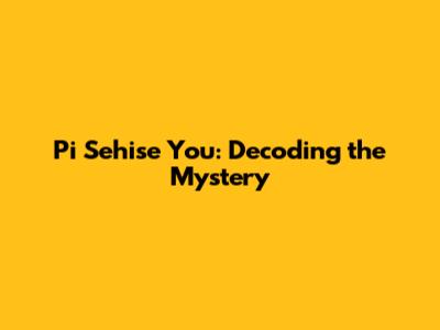 Pi Sehise You: Decoding The Mystery