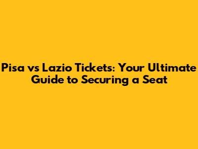 Pisa Vs Lazio Tickets: Your Ultimate Guide