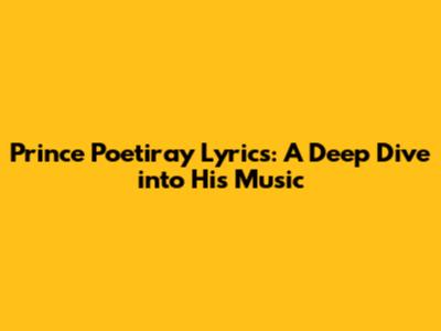 Prince Poetiray Lyrics: A Deep Dive Into His Music