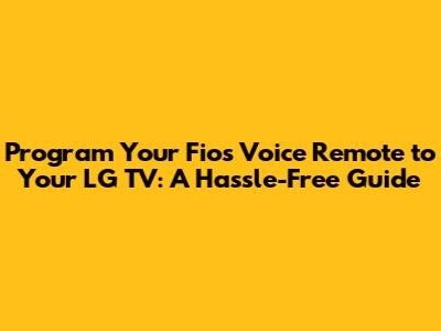 Program Fios Voice Remote To LG TV: Step-by-Step Guide