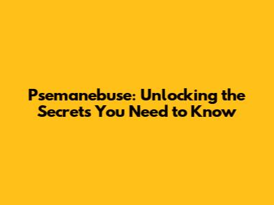 Psemanebuse: Unlocking The Secrets You Need To Know
