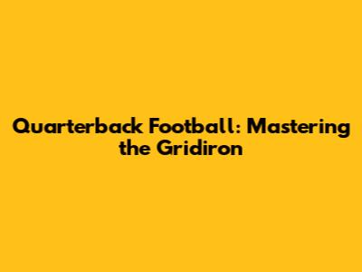 Quarterback Football: Mastering The Gridiron