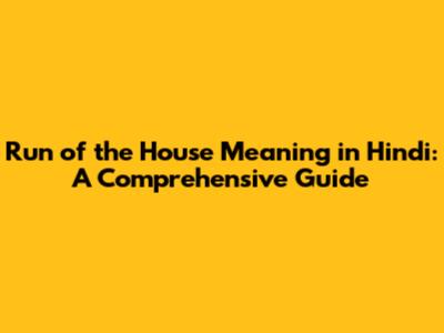 Run Of The House Meaning In Hindi: A Complete Guide