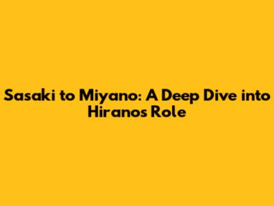 Sasaki To Miyano: A Deep Dive Into Hirano's Role