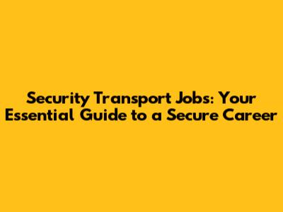 Security Transport Jobs: Your Essential Guide To A Secure Career
