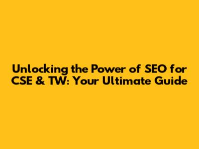 Unlocking the Power of SEO for CSE & TW: Your Ultimate Guide