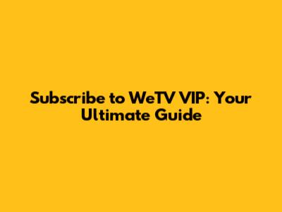 Subscribe To WeTV VIP: Your Ultimate Guide