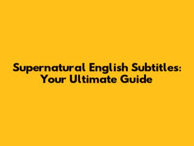 Supernatural English Subtitles: Your Ultimate Guide