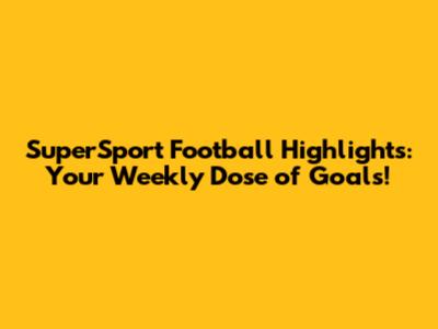 SuperSport Football Highlights: Your Weekly Dose Of Goals!