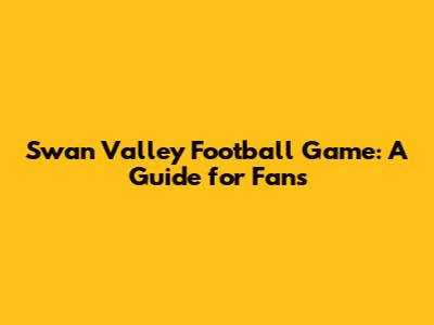 Swan Valley Football Game: A Guide For Fans