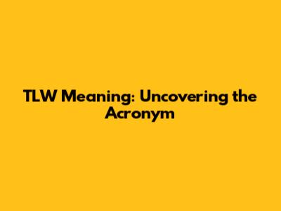 TLW Meaning: Uncovering The Acronym