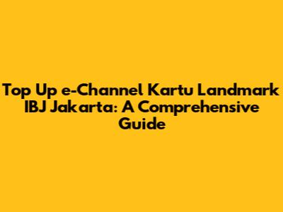 Top Up E-Channel Kartu Landmark IBJ Jakarta: A Comprehensive Guide