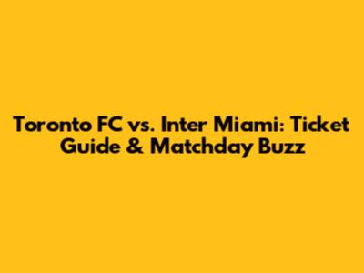Toronto FC Vs. Inter Miami: Ticket Guide & Matchday Buzz