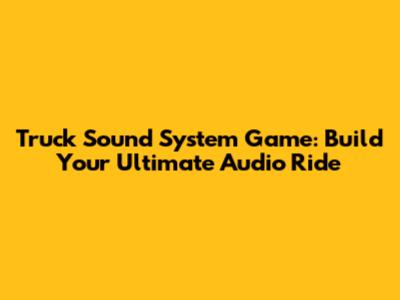 Truck Sound System Game: Build Your Ultimate Audio Ride