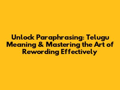 Unlock Paraphrasing: Telugu Meaning & Mastering The Art