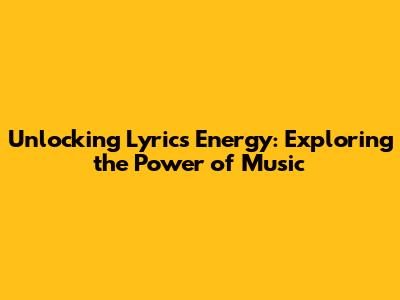 Unlocking Lyrics Energy: Exploring The Power Of Music