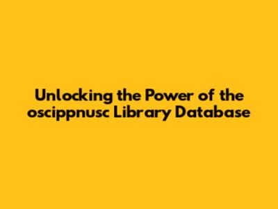 Unlocking The Power Of The Oscippnusc Library Database