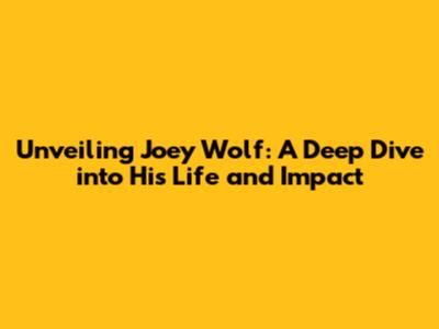Unveiling Joey Wolf: A Deep Dive Into His Life And Impact