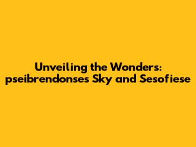 Unveiling The Wonders: Pseibrendonse's Sky And Sesofiese
