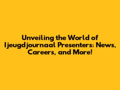 Unveiling The World Of Ijeugdjournaal Presenters: News, Careers, And More!