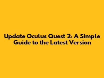 Update Oculus Quest 2: A Simple Guide To The Latest Version
