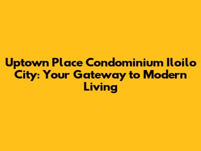Hey there, future Iloilo residents! Are you dreaming of a stylish, modern condo right in the heart of Iloilo City? Well, look no further because Uptown Place Condominium Iloilo City is here to make those dreams a reality. This isn't just about finding a place to live; it's about embracing a lifestyle. Imagine waking up to stunning views, having top-notch amenities at your fingertips, and being just steps away from the city's best offerings. That's the promise of Uptown Place. Let's dive deep and explore everything this amazing condominium has to offer, from its prime location and luxurious features to the vibrant community it fosters. We'll cover why Uptown Place Condominium Iloilo City is the ultimate choice for those seeking a blend of comfort, convenience, and contemporary living. Get ready to discover your new home!