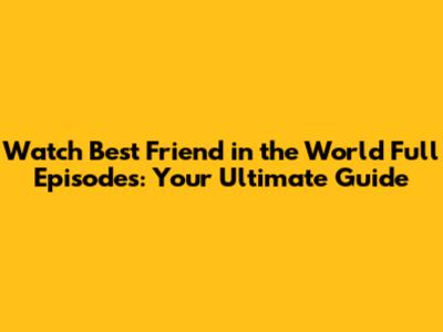 Where to Watch "Best Friend in the World" Full Episodes Online