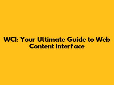 WCI: Your Guide To Web Content Interface